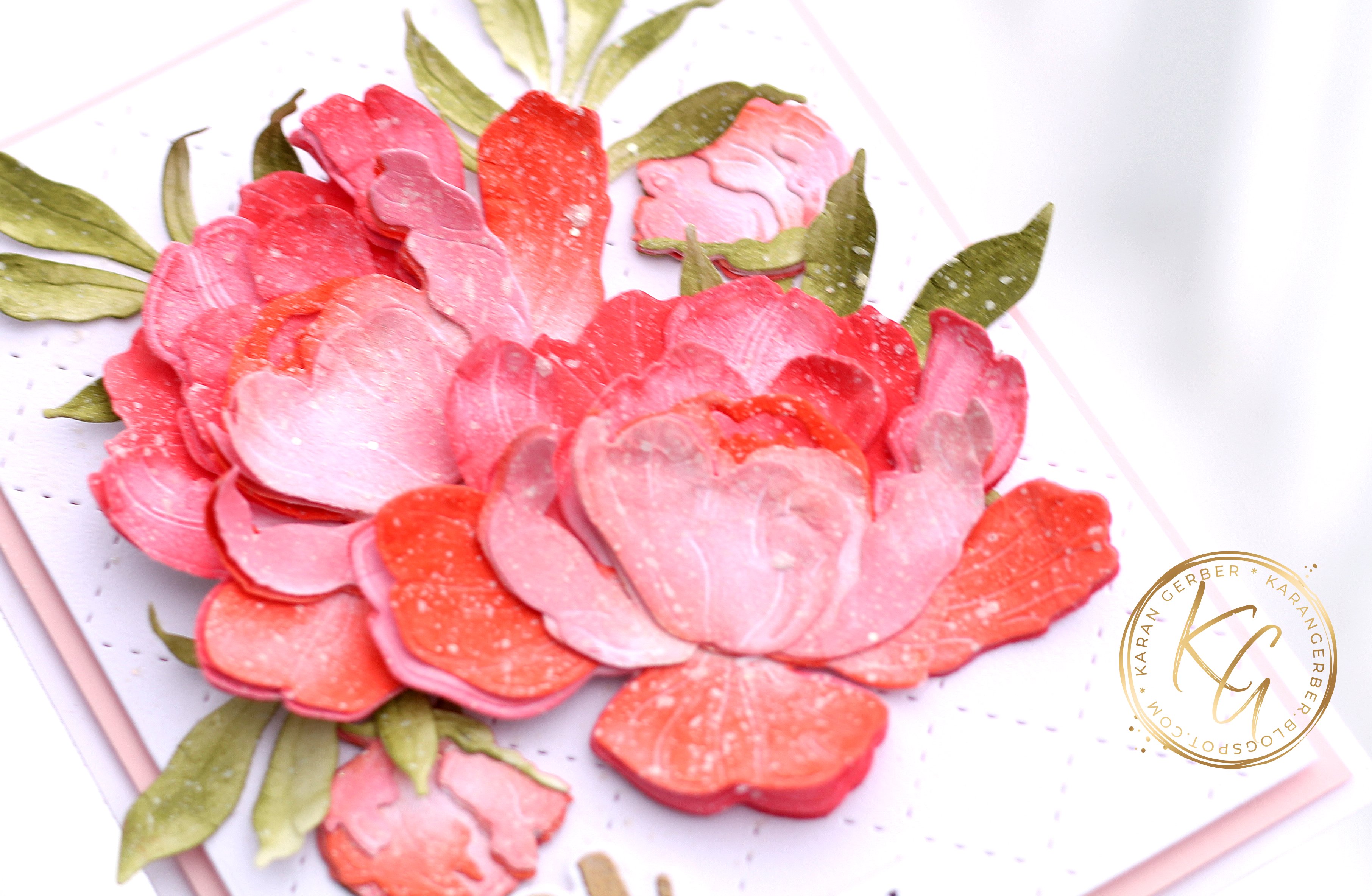 This is the Lovely Layers Peony which has 7 layers to it to create the gorgeous peony, I cut two of each of the dies in the peony set, as i knew i wanted to create two flowers and two buds, the layering guide makes it easy to know how to shade and how to assemble.